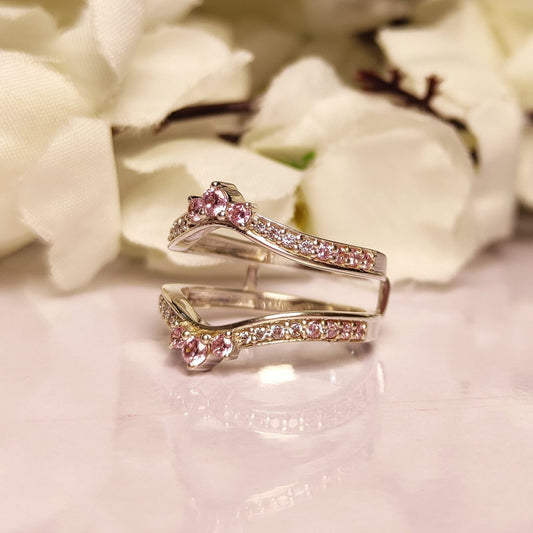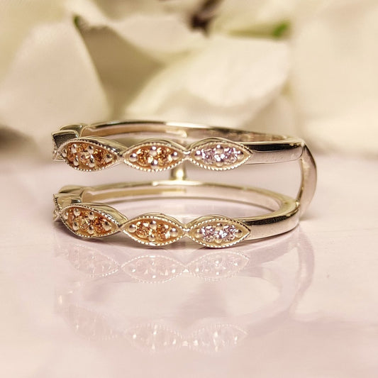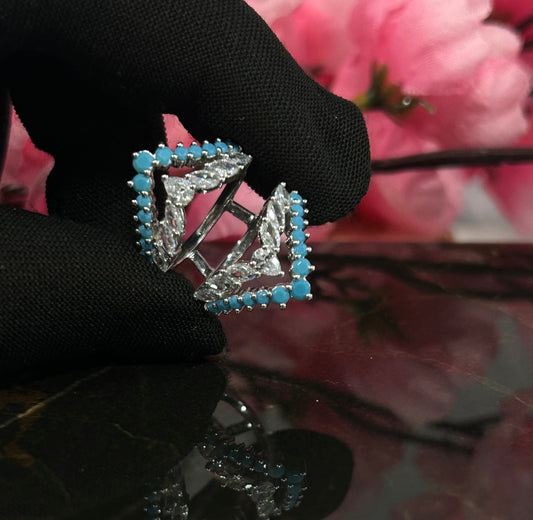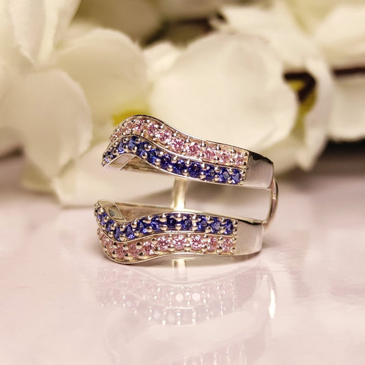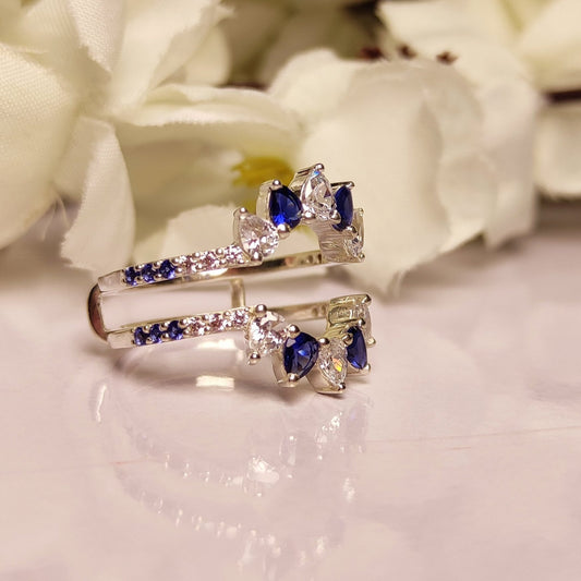 Anillo de boda con zafiro blanco y azul que realza la envoltura