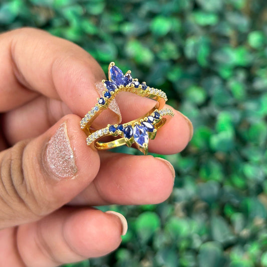 Chaqueta de anillo de compromiso de boda de zafiro azul