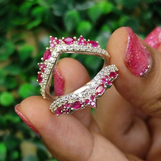 Envolturas para realzar anillos de rubí y diamantes