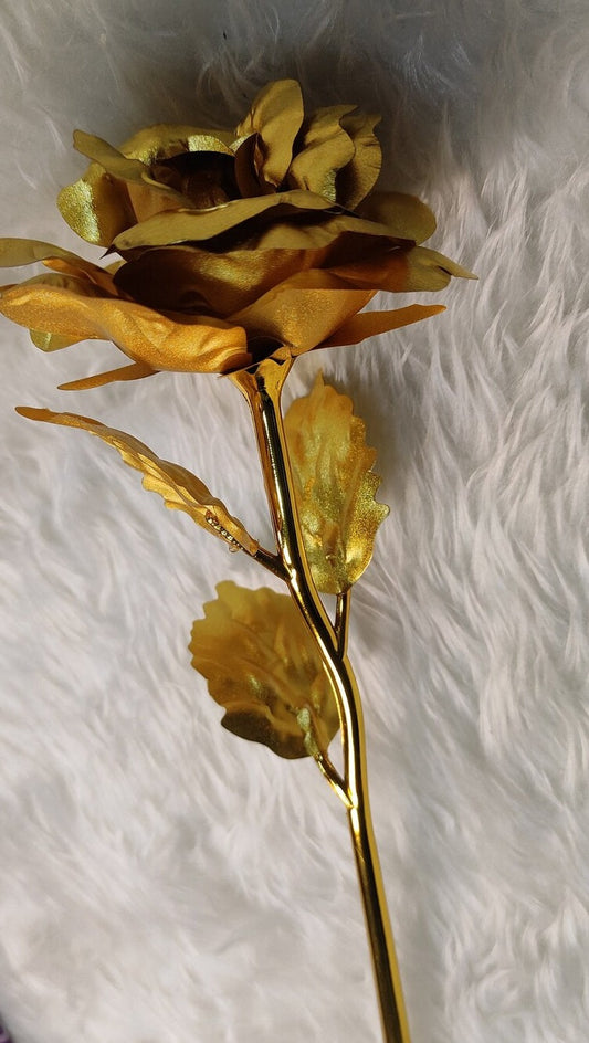 Flor de propuesta de rosa de aluminio bañada en oro de 24 quilates hecha a mano