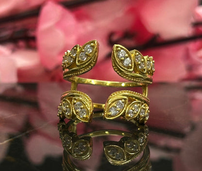 Chaqueta de anillo de boda de diamantes de 0,50 CT- Potenciador de anillo abierto- Protector de anillo de compromiso de oro amarillo de 14 quilates sobre banda potenciadora para mujer - Regalos de aniversario
