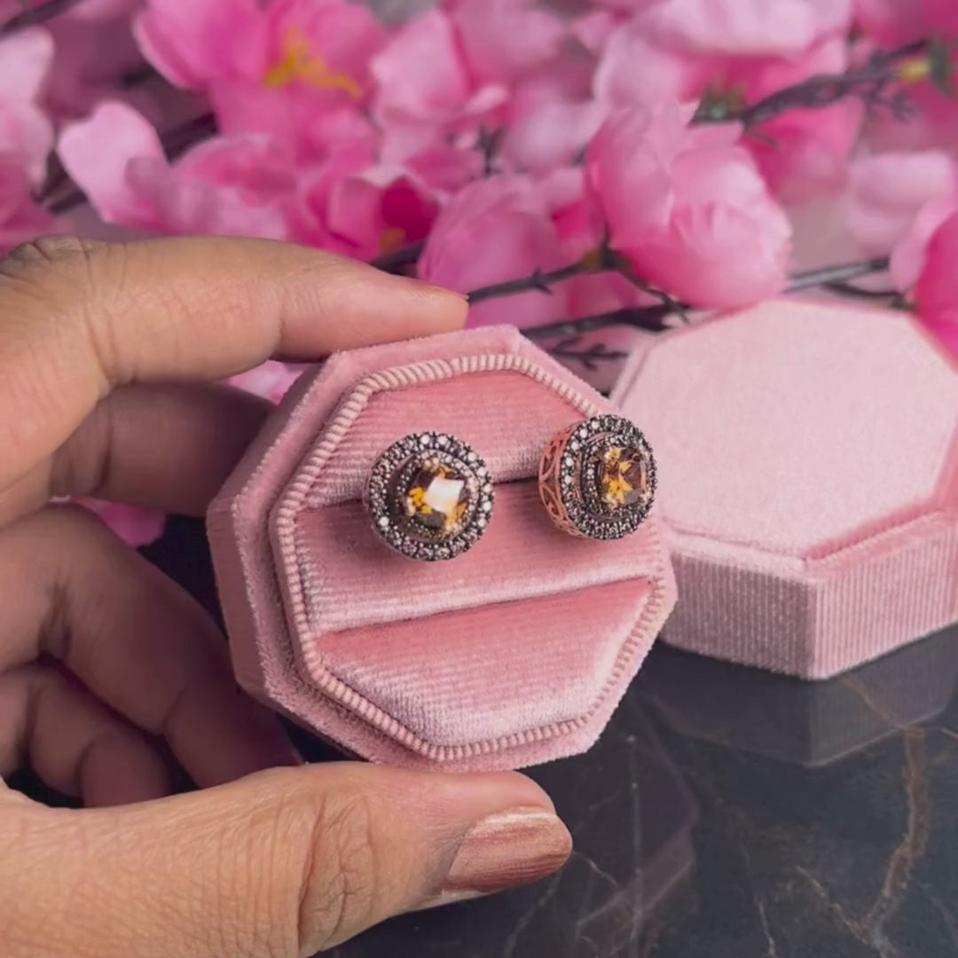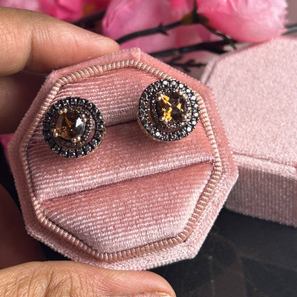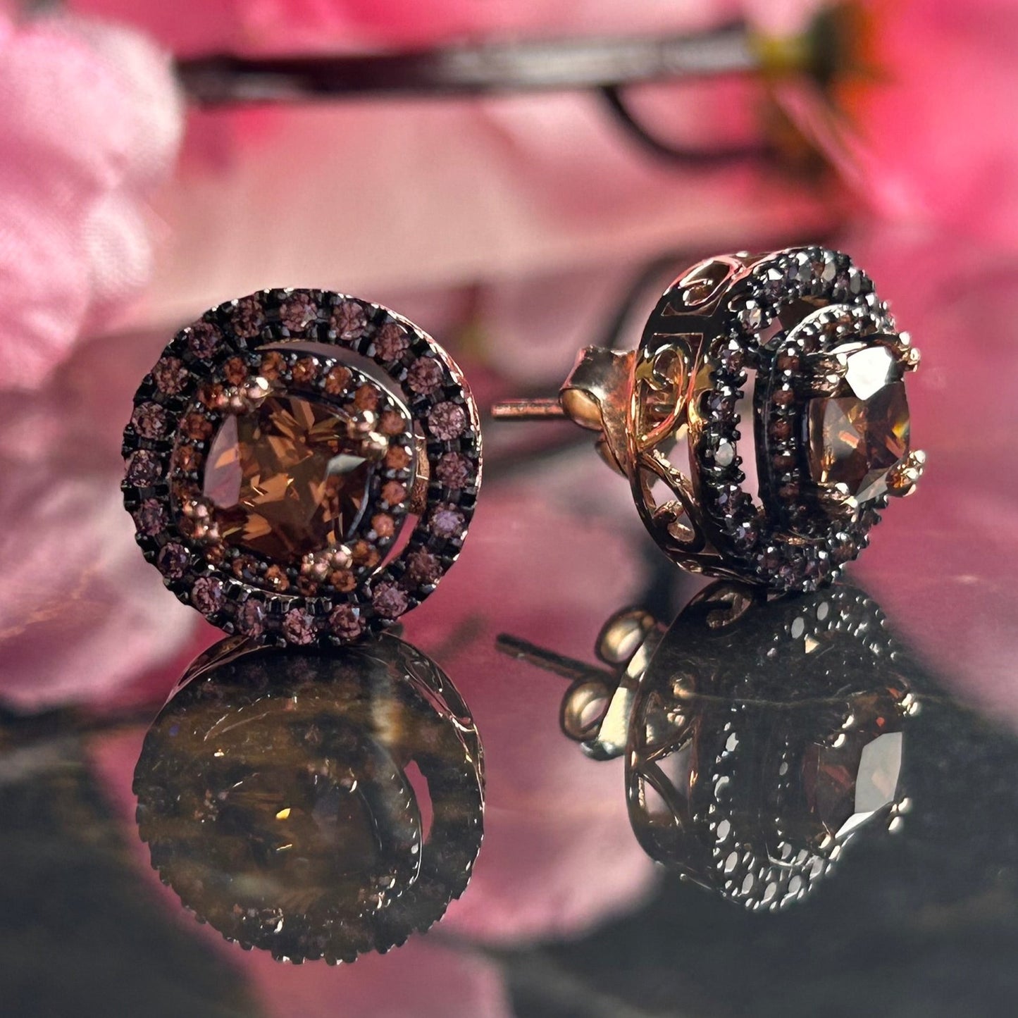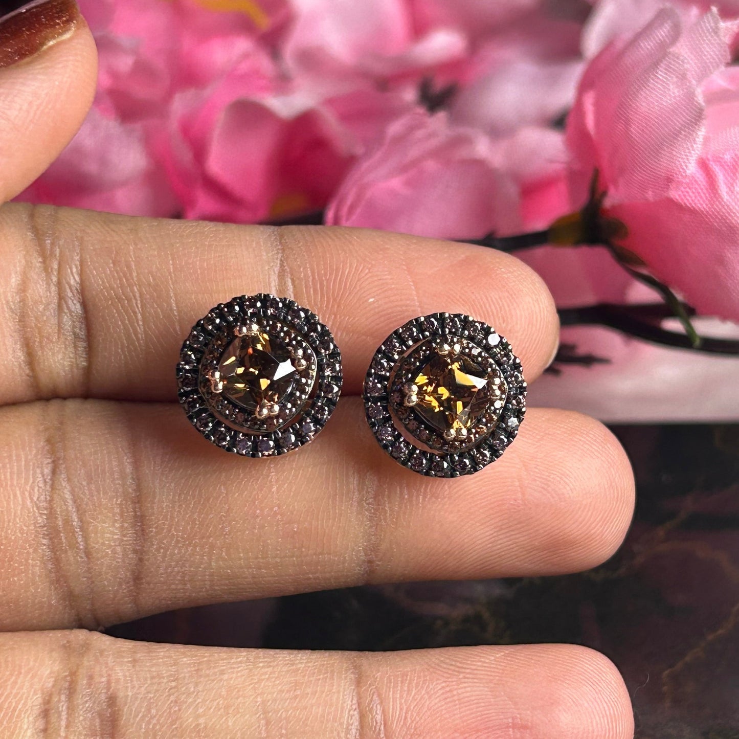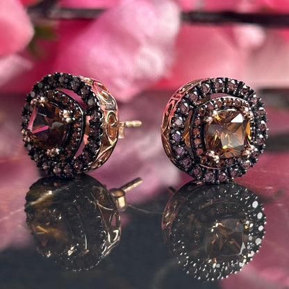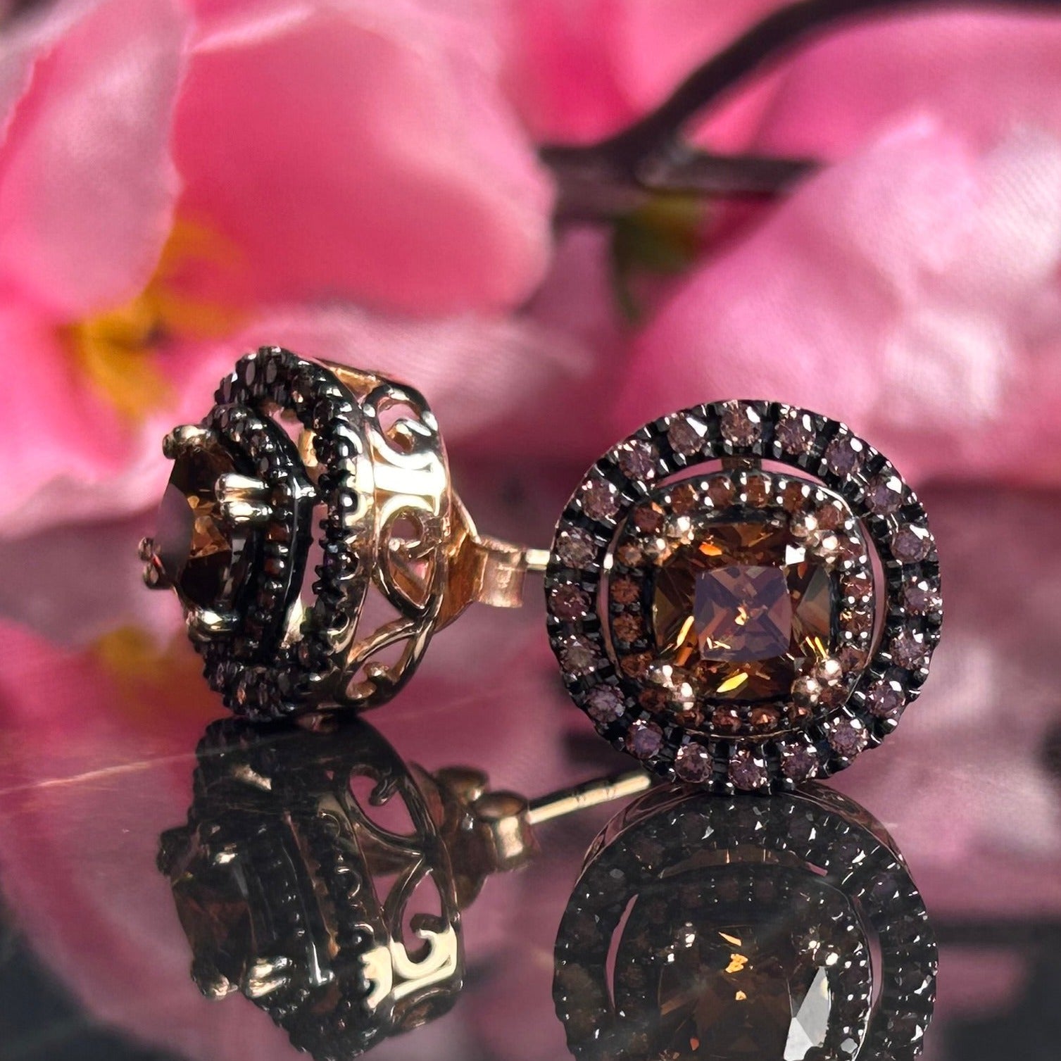 Pendientes con halo de diamantes en forma de cojín de color marrón natural