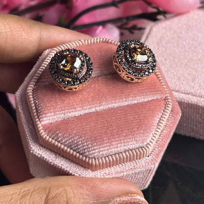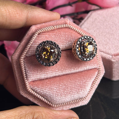 2.2Ct Cojín Diamantes Marrón Natural Pendientes Halo impresionante joyería art déco Choco Diamante Stud Pendiente Smokey marrón Diamante Pendiente Belleza