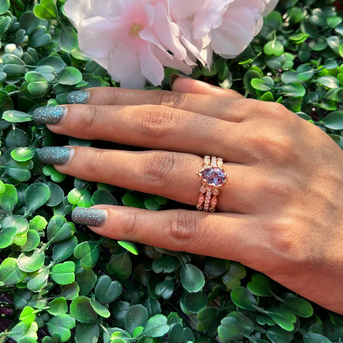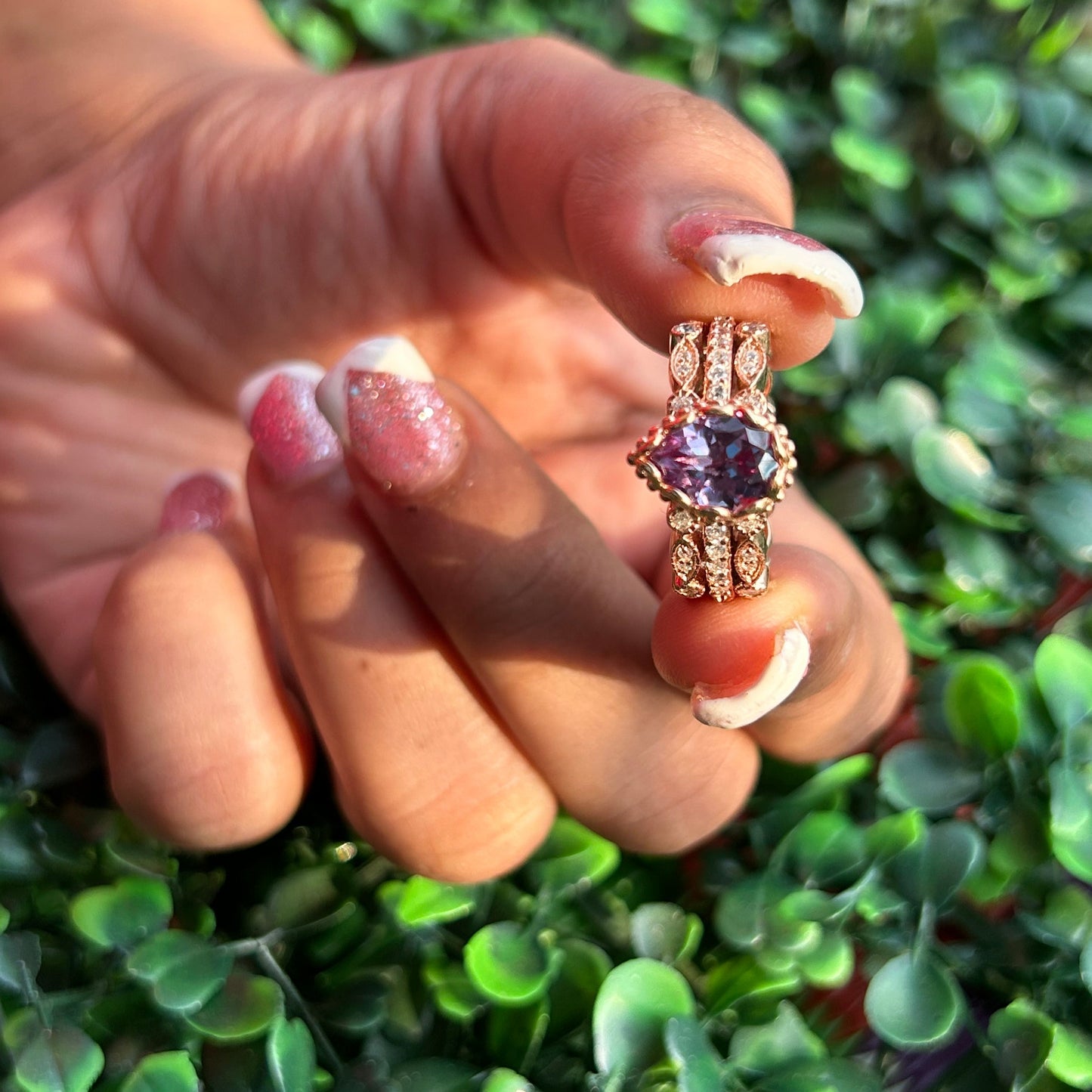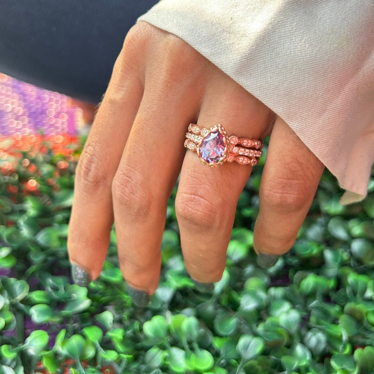 Anillo de diamantes de alejandrita natural- Anillo de diamantes de alejandrita de talla pera 14k oro rosa Vermeil anillo de compromiso de boda- anillo nupcial- regalos de anillo de aniversario