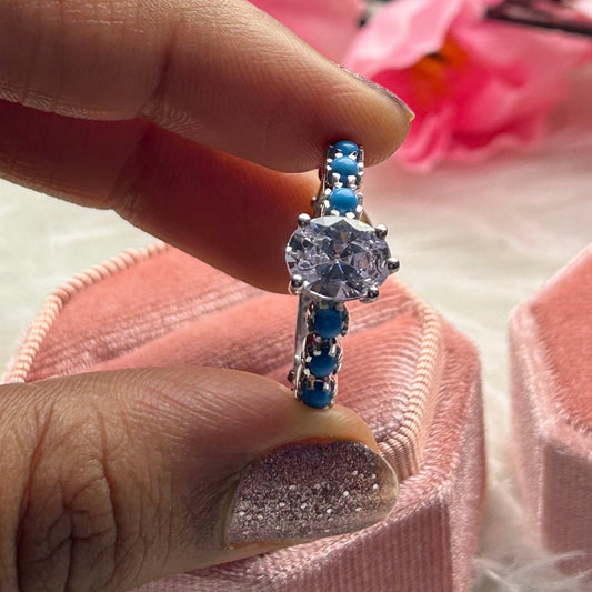 JOYE Blue eand White Spphire Ring- 925 Sterling Silver Art Deco Wedding Engagement Ring For Women