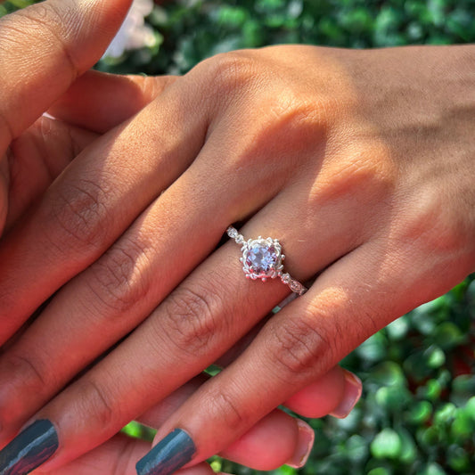 SCARLET London Blue Topaz and Brown Diamond Engagement Ring- December Birthstone Ring For Her