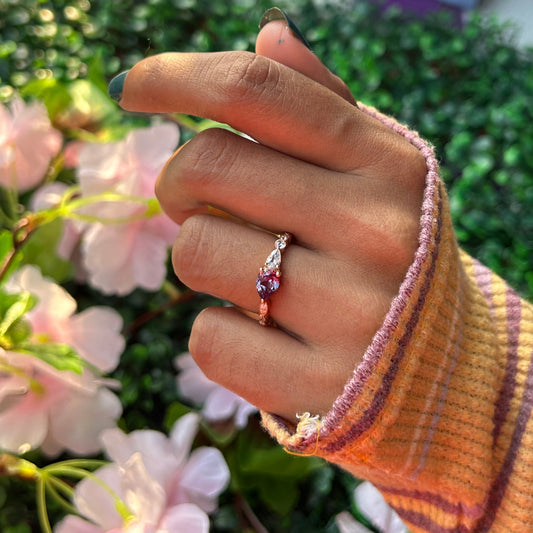 Nature Inspired Moissanite and Ruby Engagement Ring- Promise Ring Pink Gemstone Branch Bridal Ring Jewelry