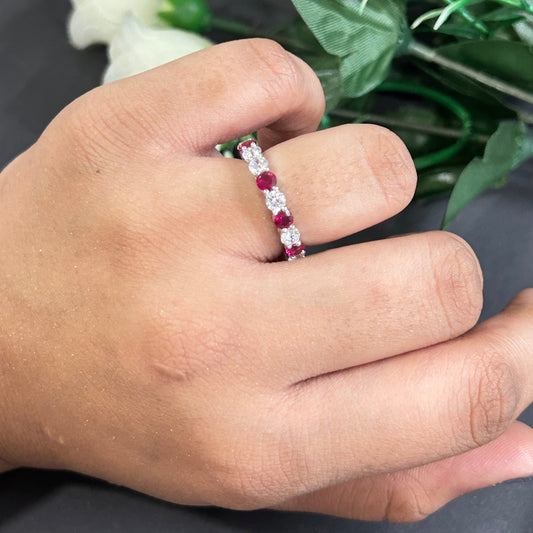 Ruby and White Diamond Eternity Wedding Ring in 925 Sterling Silver Promise Ring