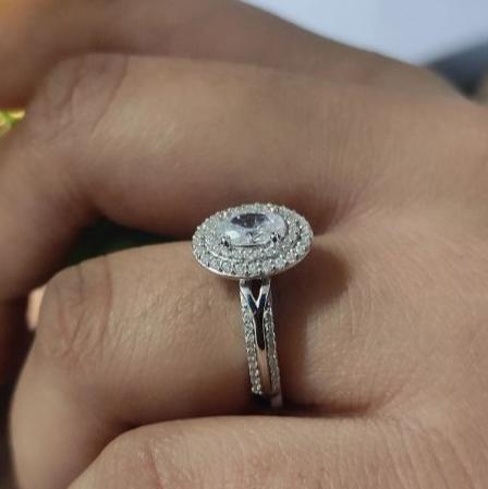 Oval & Round Cut Diamond Ring- Halo Engagement Ring- 925 Sterling Silver- Wedding Ring