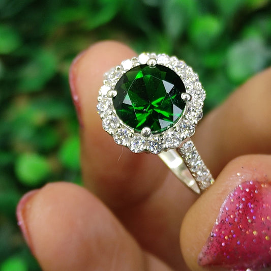 EMBER Oval Cut Green Emerald Wedding Ring 925 Sterling Silver halo Diamond Engagement Ring