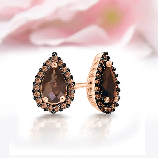 COCOAGLEAM Pear and Round Cut Brown Diamond Halo Stud Delicate Earring in 14K Rose Gold Vermeil