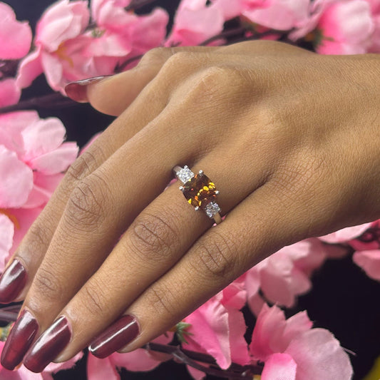 AURA Cushion Cut Natural Caramel Brown Diamond Ring- Three Stone Wedding Engagement Ring