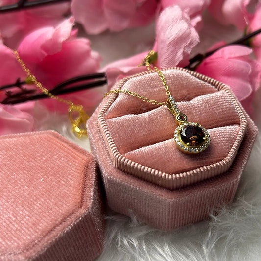 EMBER 1.30Ct Natural Smoky Brown Diamond Pendant- Halo White Diamond Necklace For Women