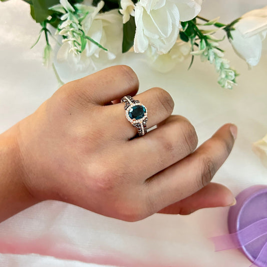 Vintage London Blue Topaz & Brown Diamond Wedding Ring in 14K Rose Gold Vermeil