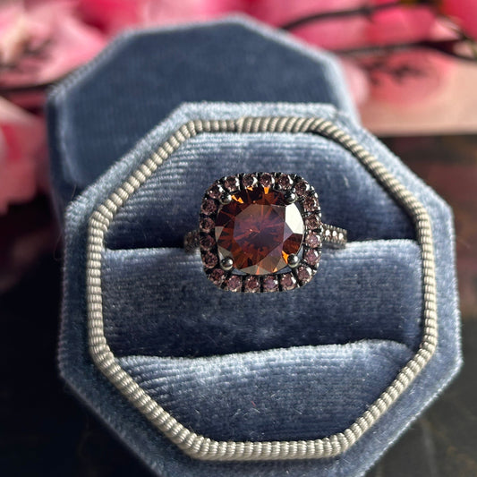 EARTHY Natural Champagne Diamond Ring- Halo Brown Diamond Engagement Ring