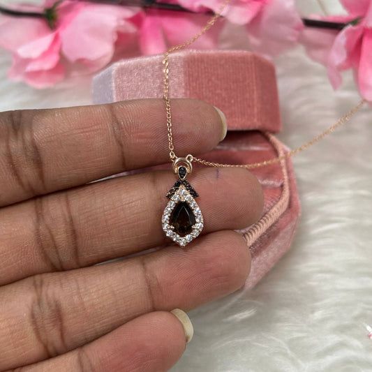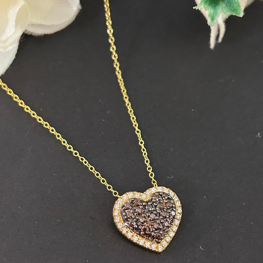 Romantic Natural Smokey Brown Diamond Heart Shaped Pendant Necklace For Women