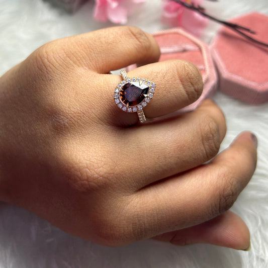 SCARLET Pear Cut Natural Champagne Diamond Wedding Ring- Halo White Diamond Engagement Ring