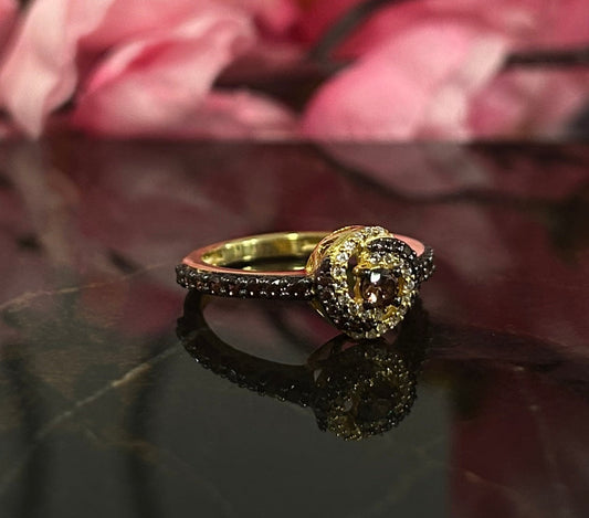 LUV Natural Champagne Diamond Wedding Ring 14K Yellow Gold Vermeil Anniversary Gift Ring