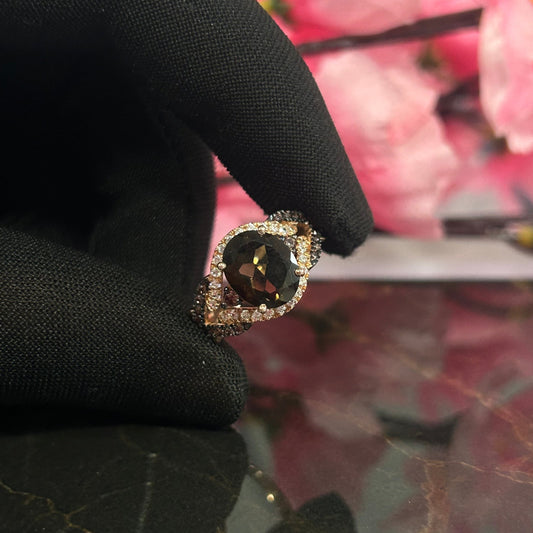 Vintage Natural Round and Oval Cut Smoky Brown Diamond Engagement Ring in 14K Rose Gold Vermeil