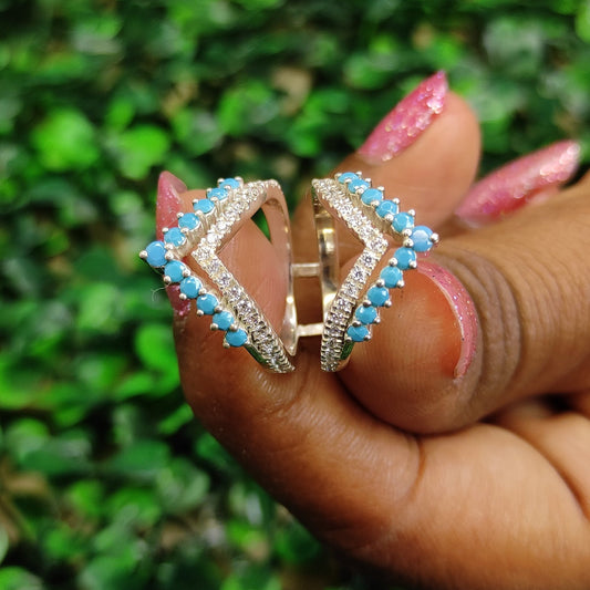 AZURE Round Cut Diamond and Turquoise Ring Enhancer 925 Sterling Silver Wedding Ring Guard