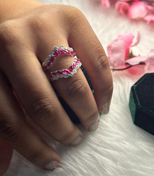 FIERY Marquise Cut Ruby and Sapphire Ring Guard 925 Sterling Silver Wedding Ring Jacket