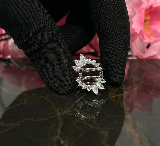 Marquise Cut Diamond Ring Guard – 925 Sterling Silver Enhancer for Bridal Set