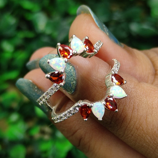AURA Pear Cut Garnet and Fire Opal Ring Guard- January/October Birthstone- Couple Birthsotne Ring