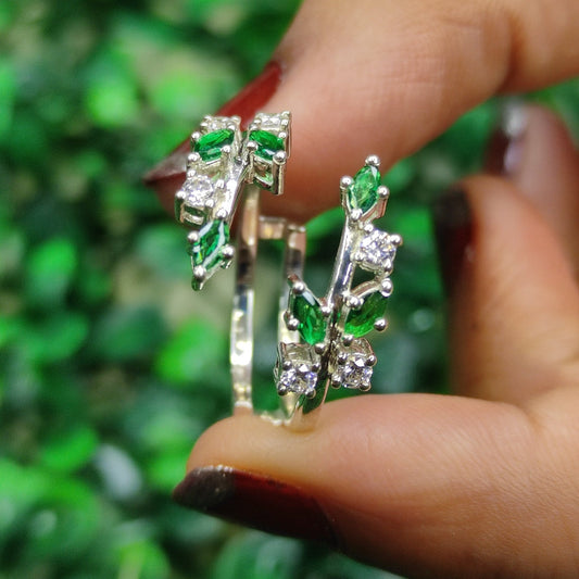 0.25Ct Green Emerald and White Diamond Open Ring Enhancer- Leaf Ring Guard in 925 Sterling Silver