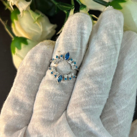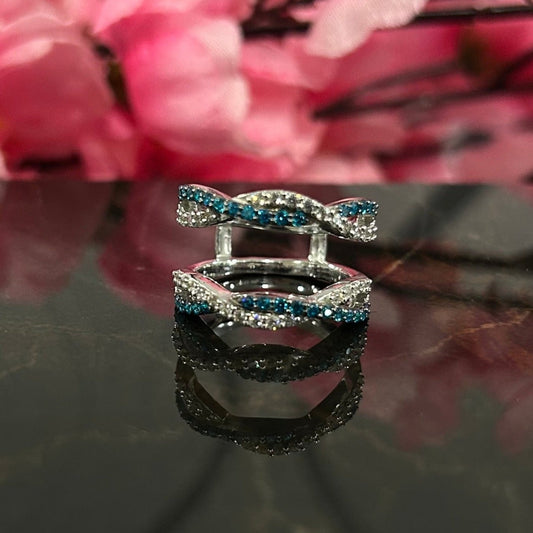 Blue Topaz and Diamond Ring Guard- 925 Sterling Silver Engagement Ring Guard