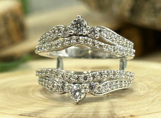 1.30Ct. White Diamond Enhancer Wedding Ring- 14K White Gold Vermeil Engagement Ring Guard