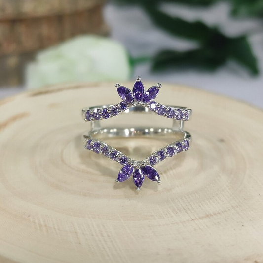 MYSTIC Marquise Cut Purple Amethyst Enhancer Wedding Ring Guard- Stackable Ring in 925 Sterling Silver