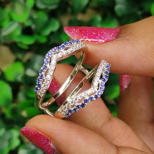DEEPHUE Blue Sapphire Ring Jacket- Engagement Wedding Ring Enhance Wrap in 925 Sterling Silver
