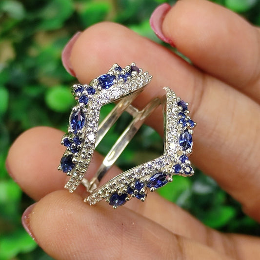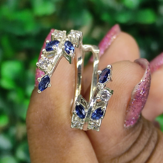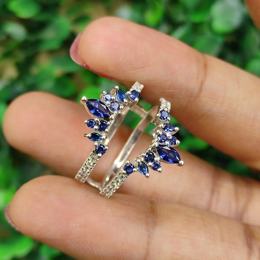 Marquise & Round Cut Blue Sapphire Diamond Ring Wrap Enhancer- Wedding ring Guard- 925 Sterling Silver