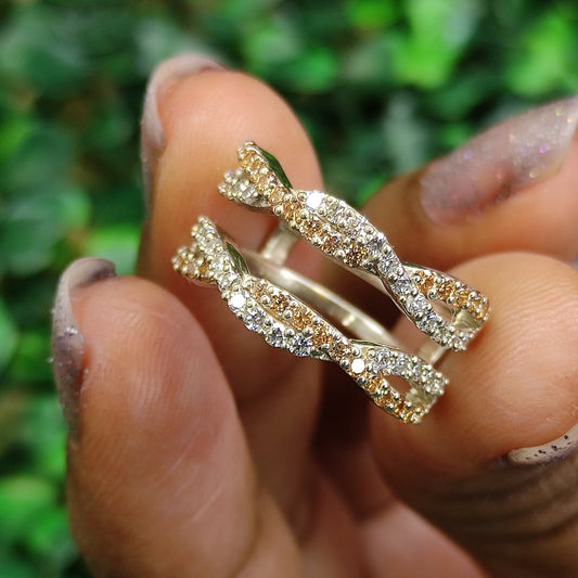 Lite Champagne Diamond and White Diamond Infinity Double Band Wedding Ring Guard in 925 Sterling Silver