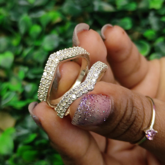 Plain Solid Silver Enhancer Guard Wedding Band- Double Curved Stacking Ring- Wrap Band Wedding Ring