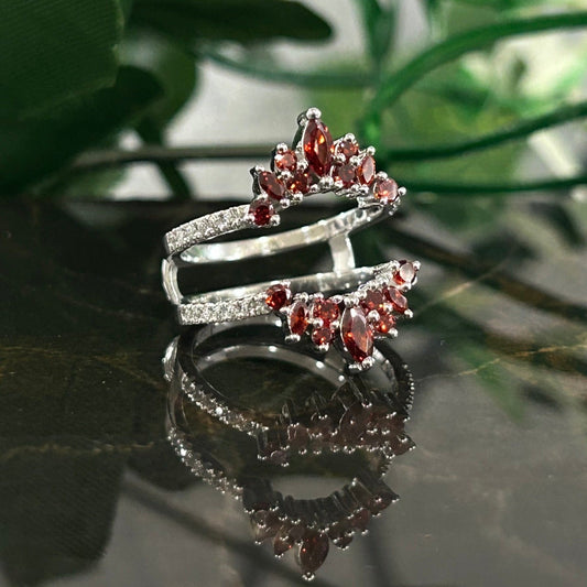 Marquise and Round Cut Red Garnet and White Diamond Wedding Ring Enhancer