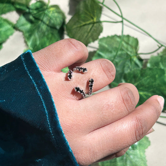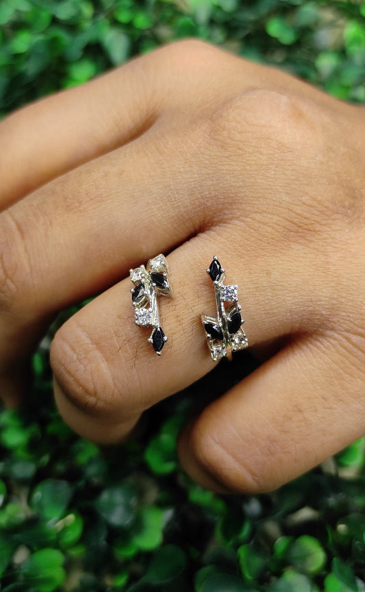 Nature Inspired Marquise Cut Black Onyx and White Diamond Leaf Ring Guard- Open Ring Enhancer Wrap