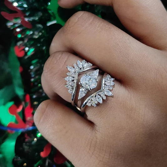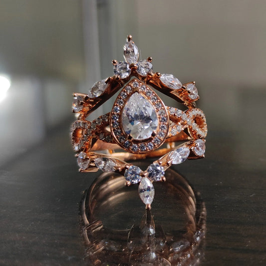 Pear Cut White Diamond Engagement Ring With Matching Ring Guard in 14K Rose Gold Vermeil