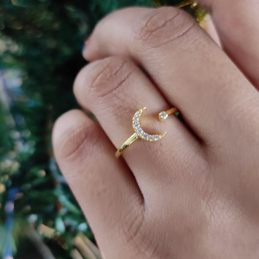 Beautiful Crescent Open Moon Ring in 14K Yellow Gold Vermeil- Promise Ring For Her