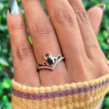 Black & White Diamond Engagement Ring in 14K Two Tone Gold Vermeil- Maleficent Crown Ring