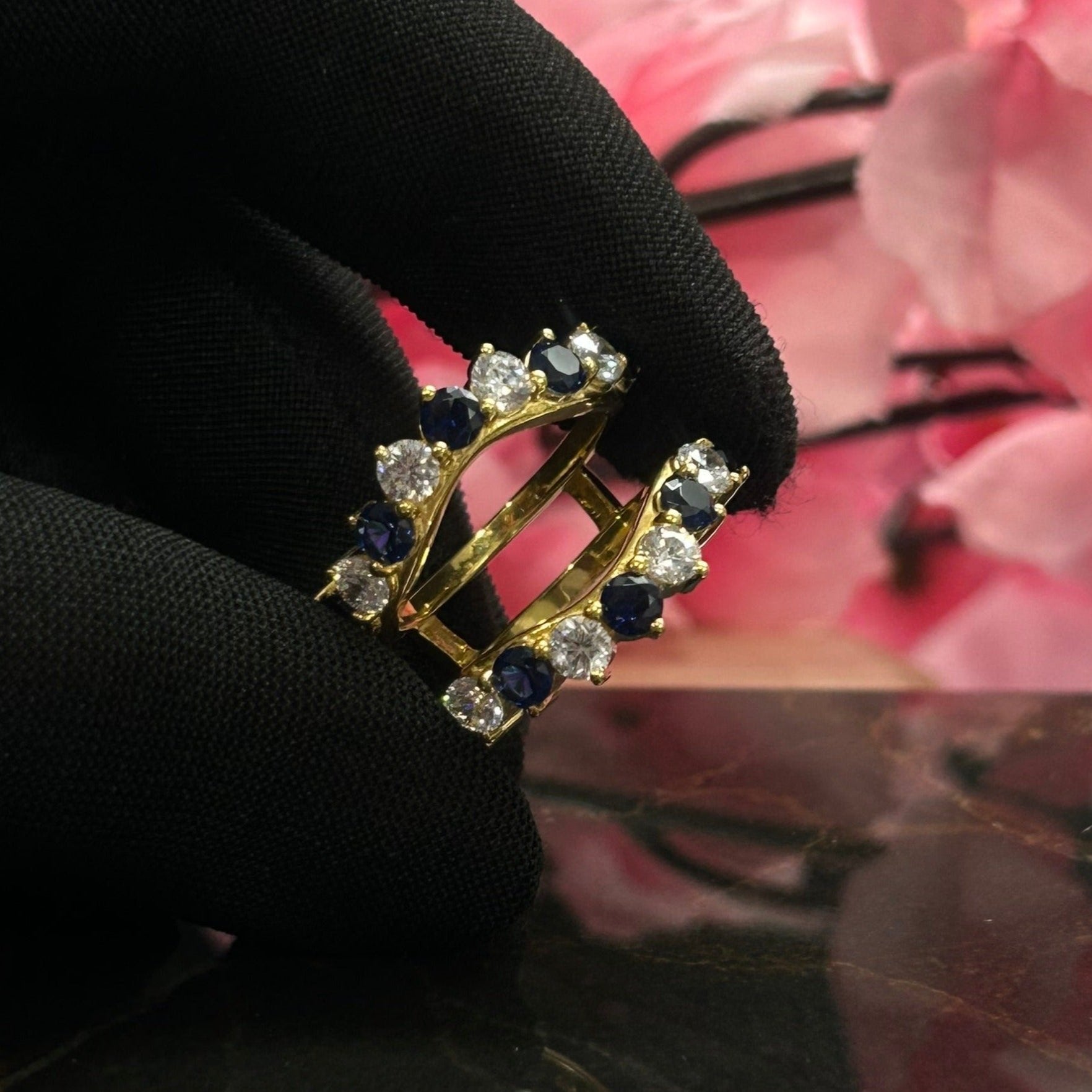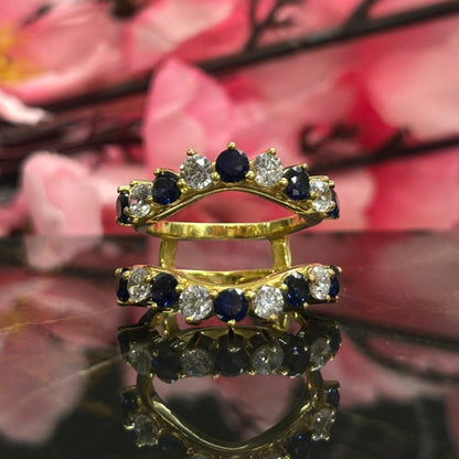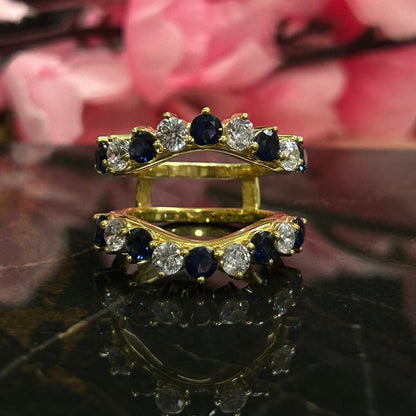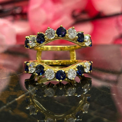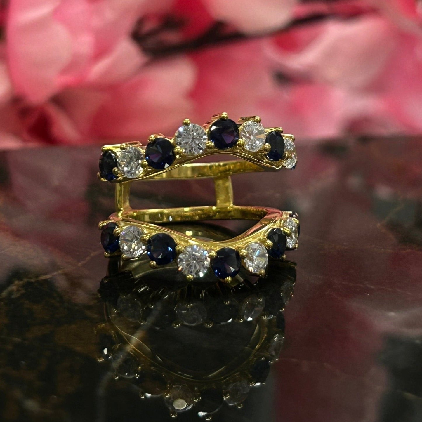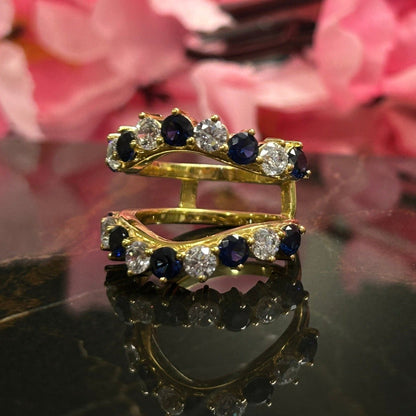 Alternating Round Cut Sapphire Ring Gurad 14K Yellow Gold Vermeil Engagement Ring jacket
