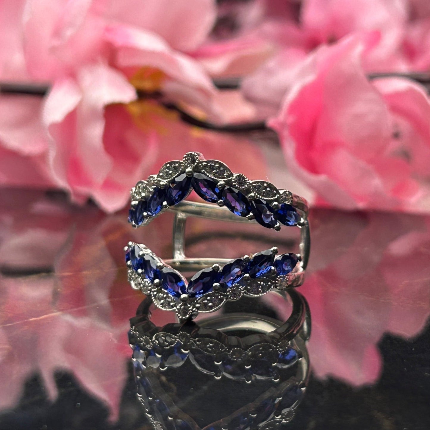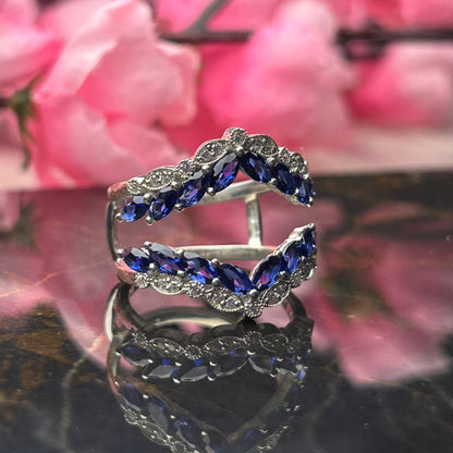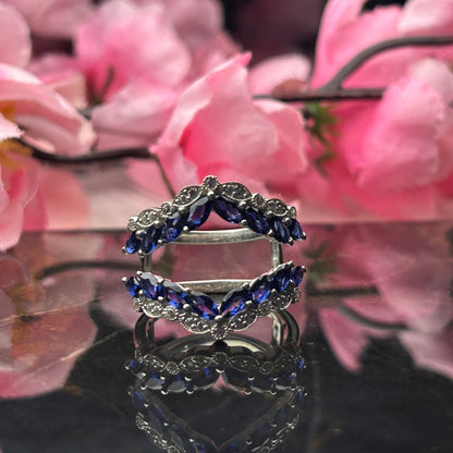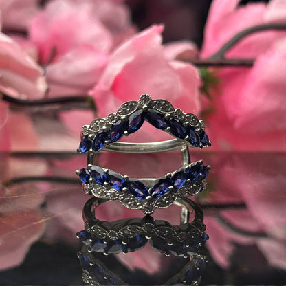 BLUE ZENITH Art Deco Blue and White Sapphire Ring Guard in 925 Sterling Silver Wedding Ring Enhance