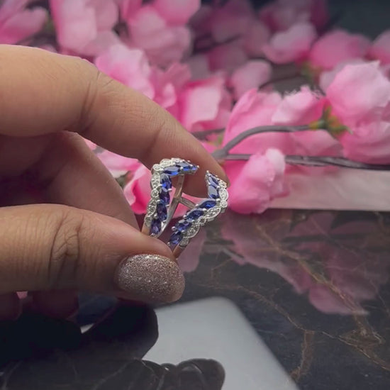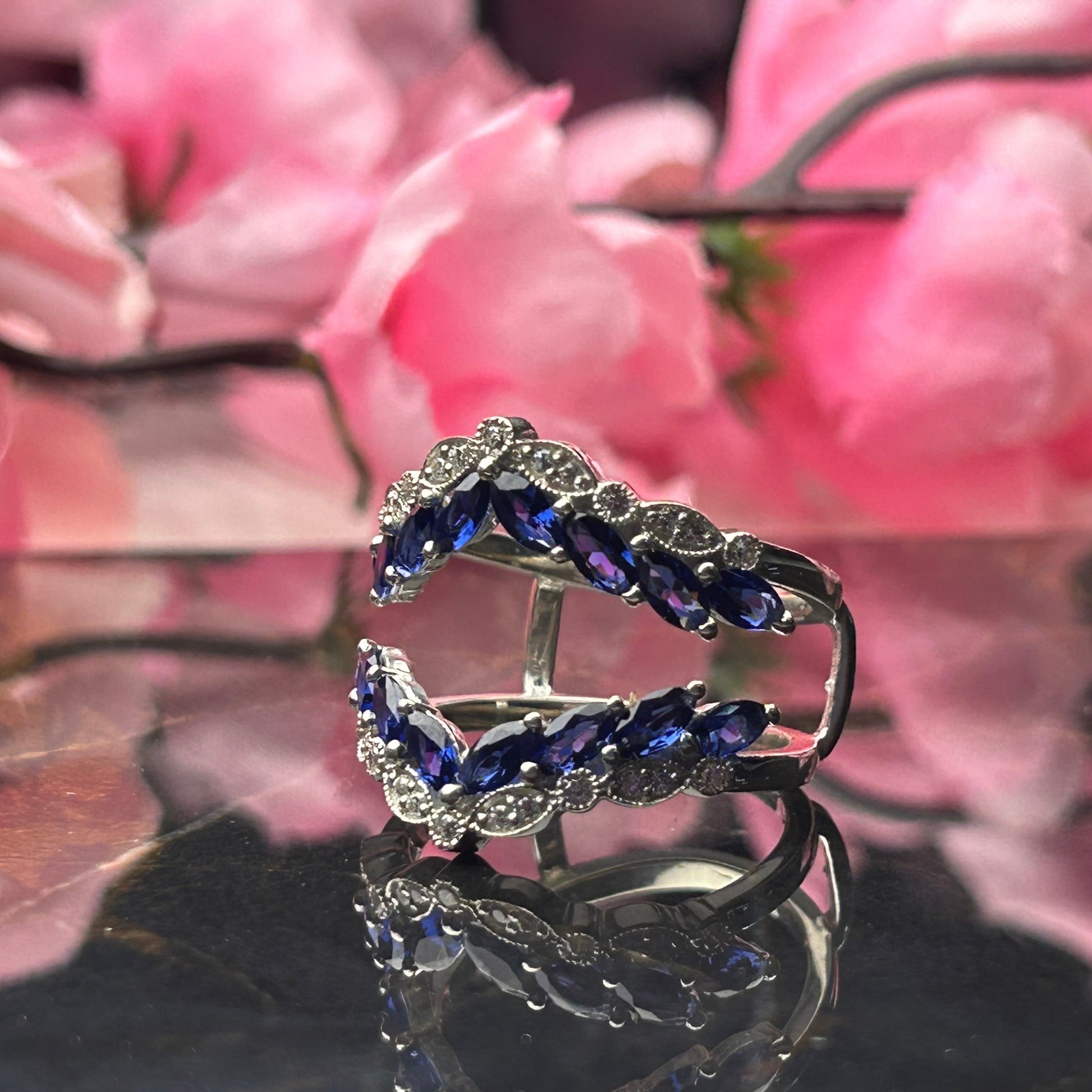 1.35 Ct Round Cut and Marquise Cut Sapphire Ring Enhance Wrap- Wedding Ring jacket 925 Sterling Silver 14K White Gold Vermeil Stackable Diamond Engagement Ring Guard Promise Ring