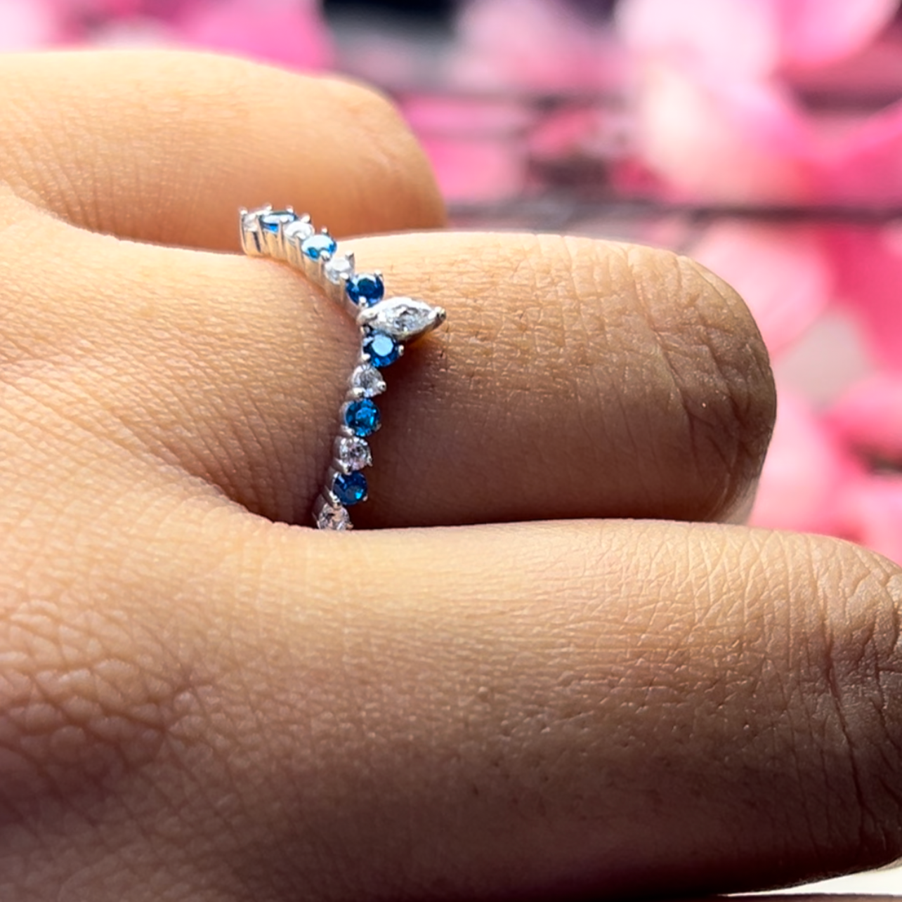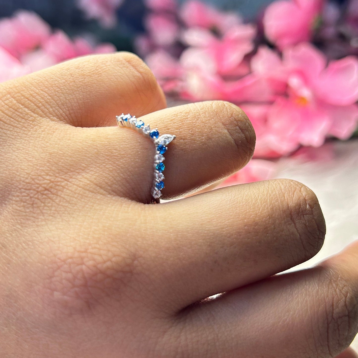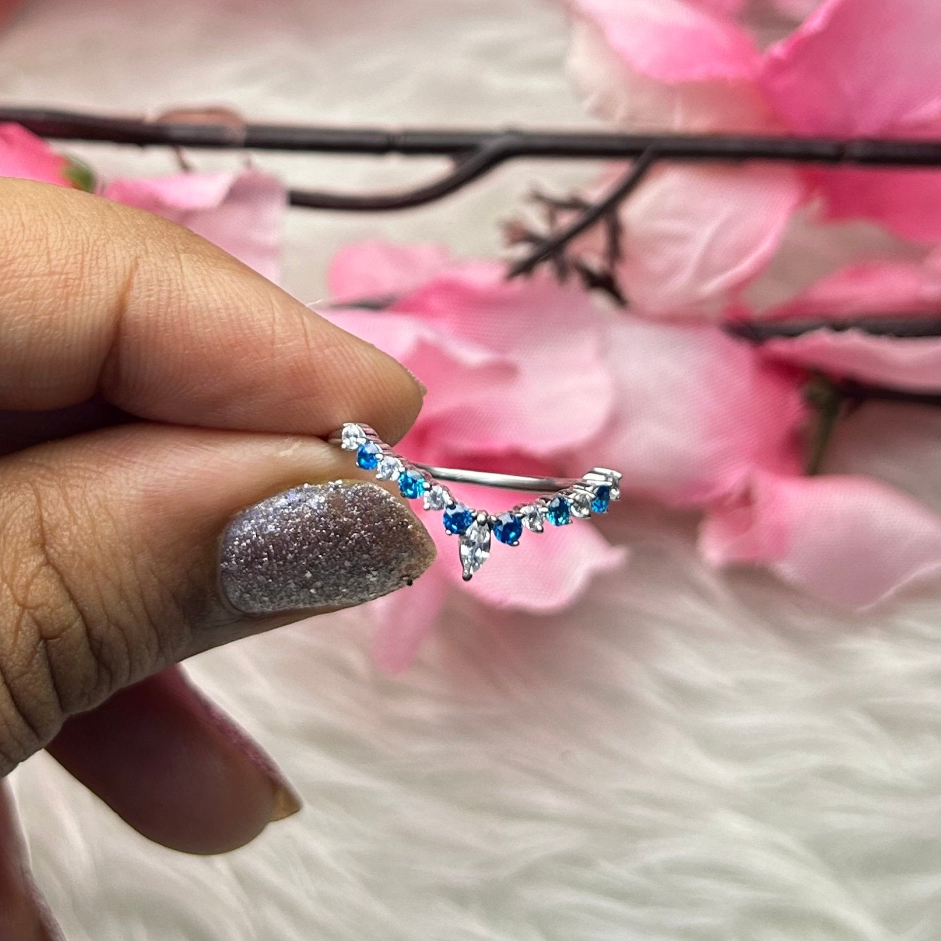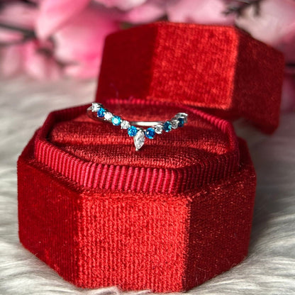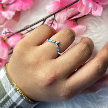 Chevron White and Blue Toapz Stacking Ring Wedding Band 14K White Gold Vermeil Engagement Ring