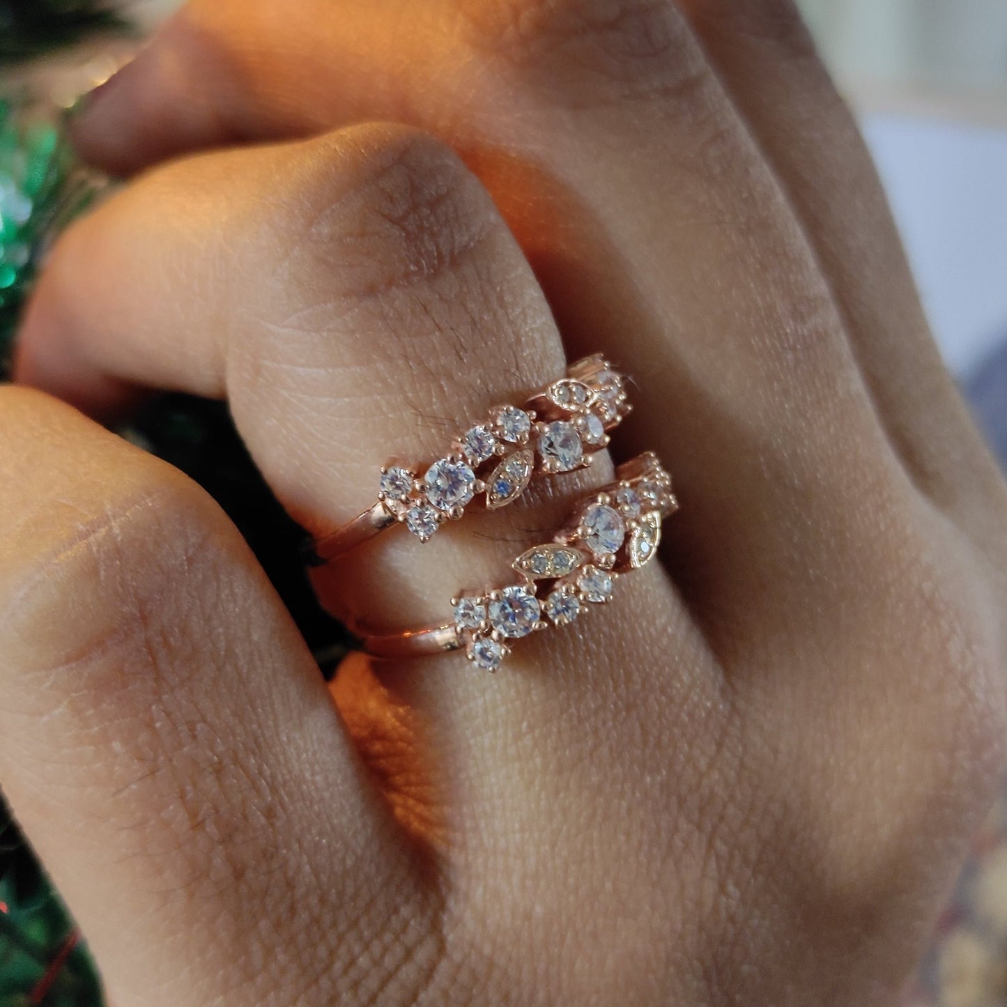 Round Cut White Diamond Ring Enhancer Wrap- 925 Sterling Silver 14K Rose Gold Vermeil Engagement Ring Jacket- Wedding Ring Guard- Gift For Her