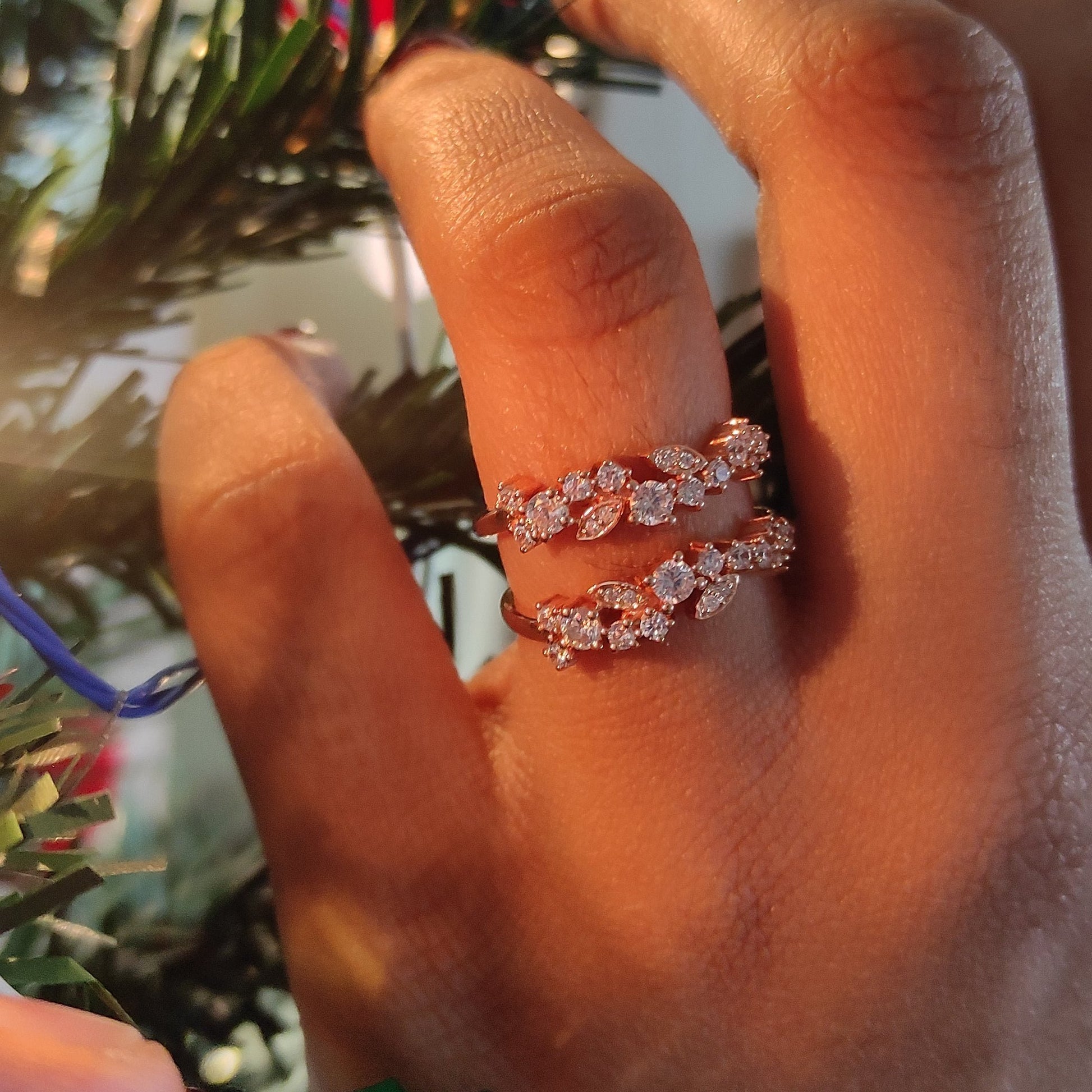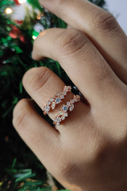 IVY Round Cut White Diamond Leaf Ring Guard- 925 Sterling Silver Wedding Ring Jacket