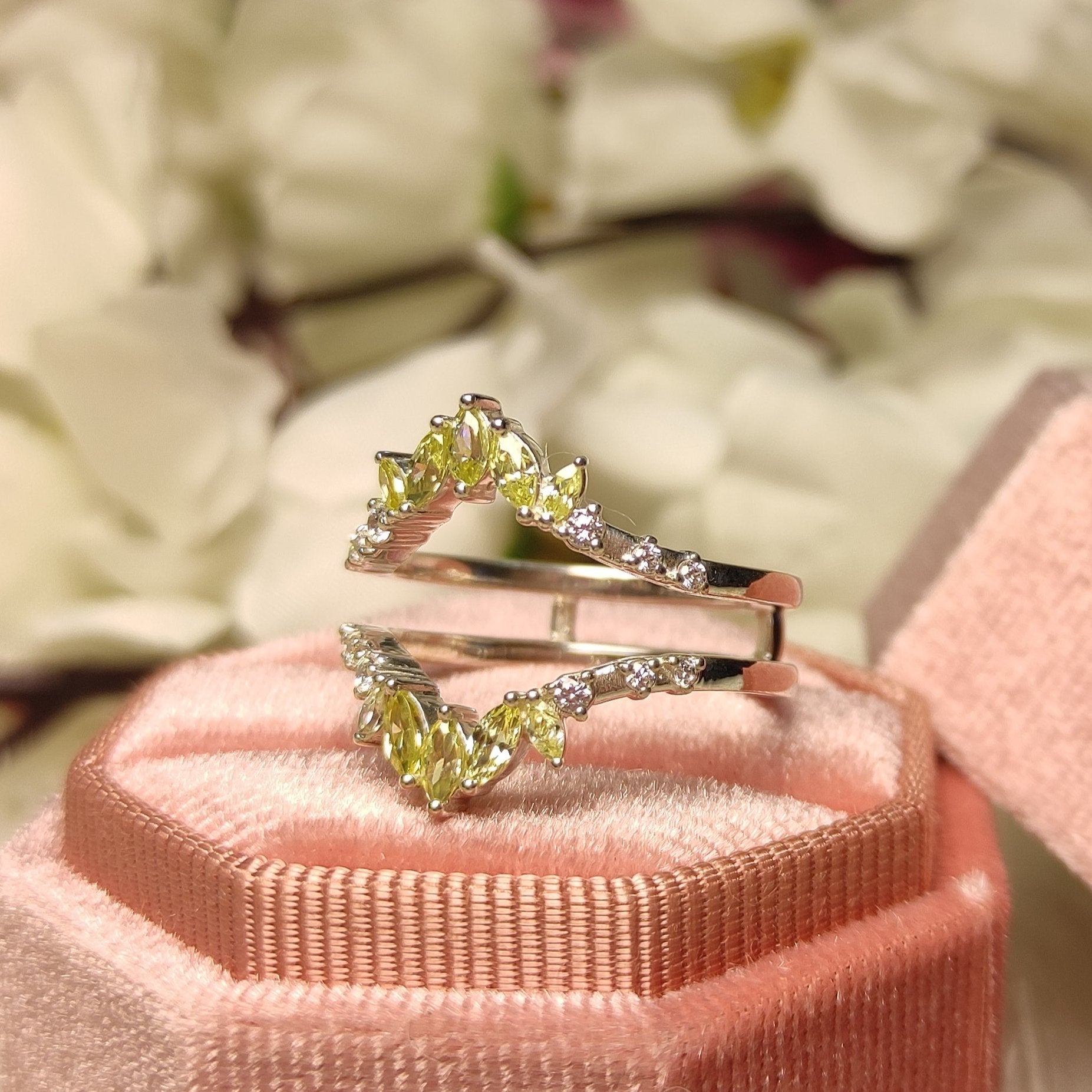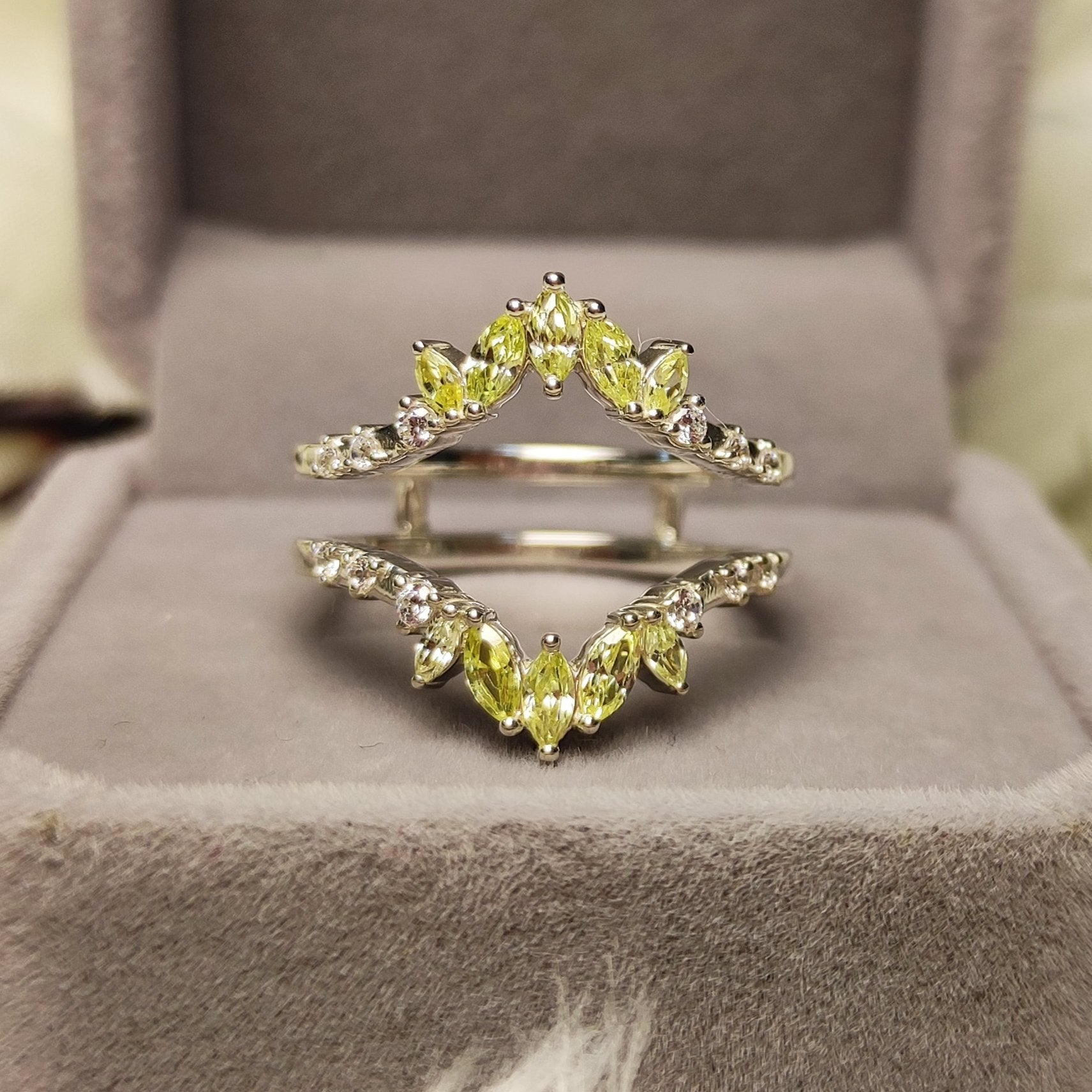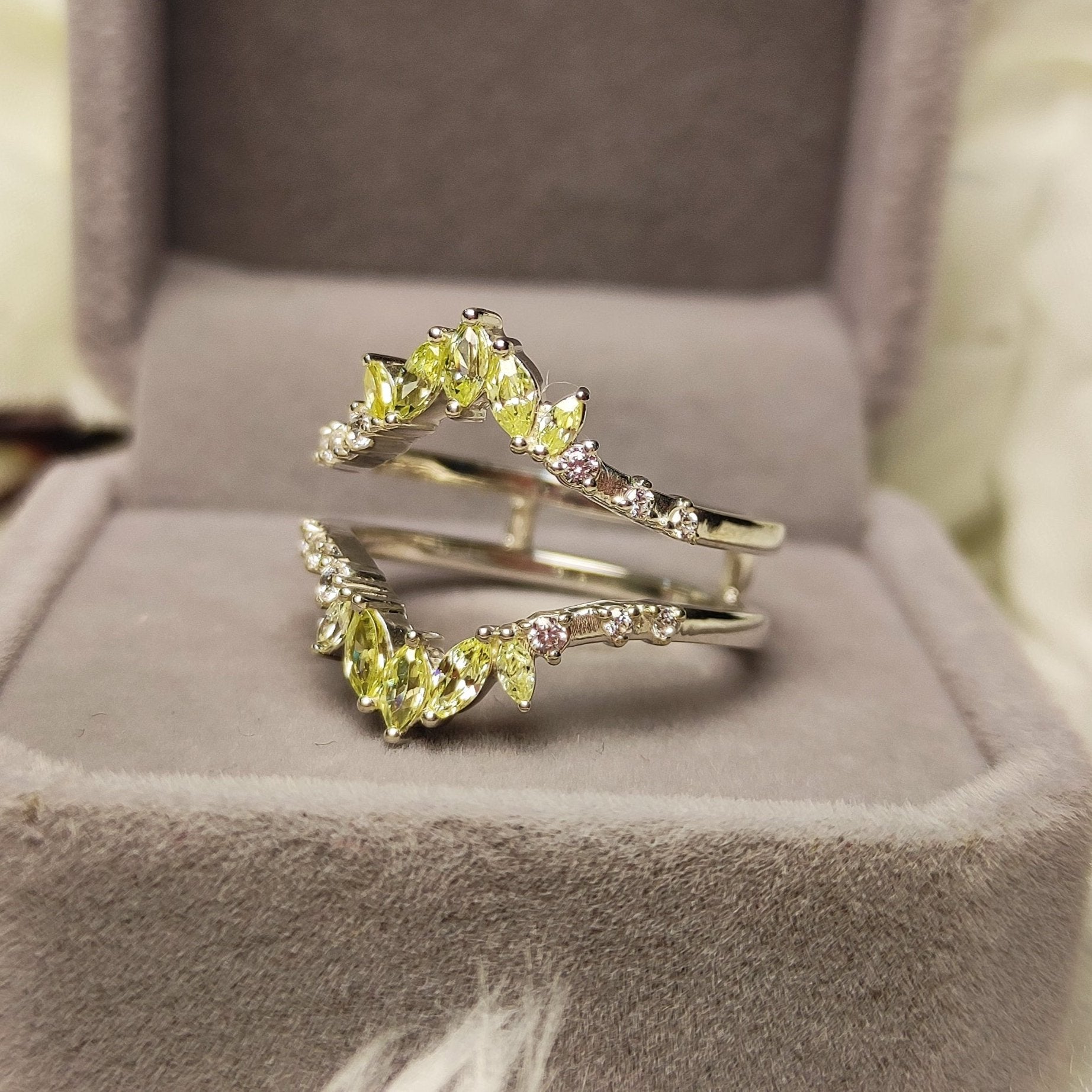 JADE Peridot and White Diamond Ring Guard- Marquise Ring Enhancer- Engagement Ring Jacket