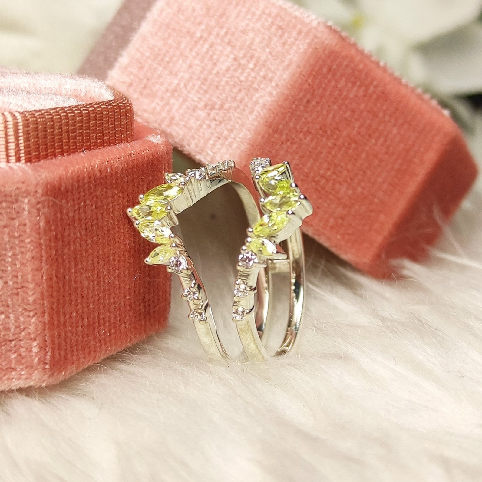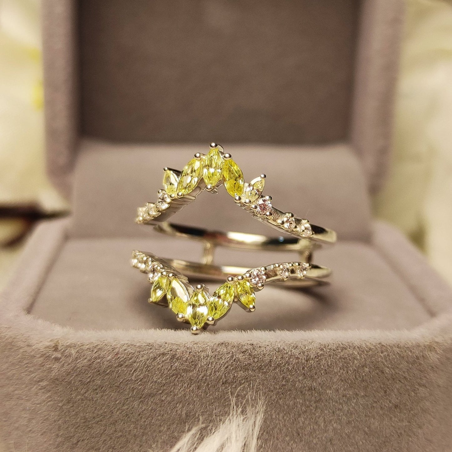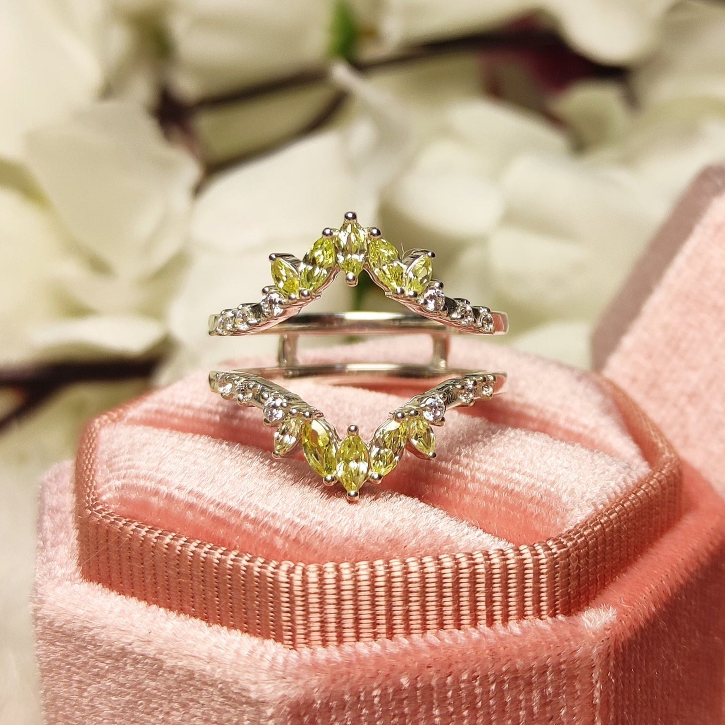 JADE Peridot and White Diamond Ring Guard- Marquise Ring Enhancer- Engagement Ring Jacket