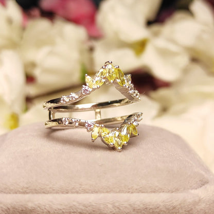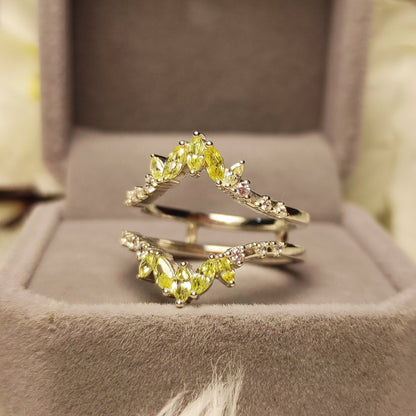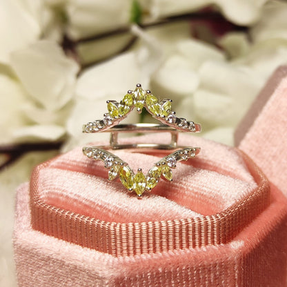 Peridot and White Diamond Ring Enhancer and Wraps- 925 Sterling Silver 14K White Gold Vermeil Engagement Wedding Ring Jacket- Birthday Anniversary Gifts