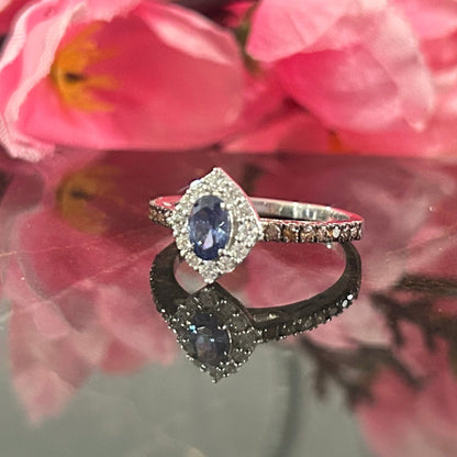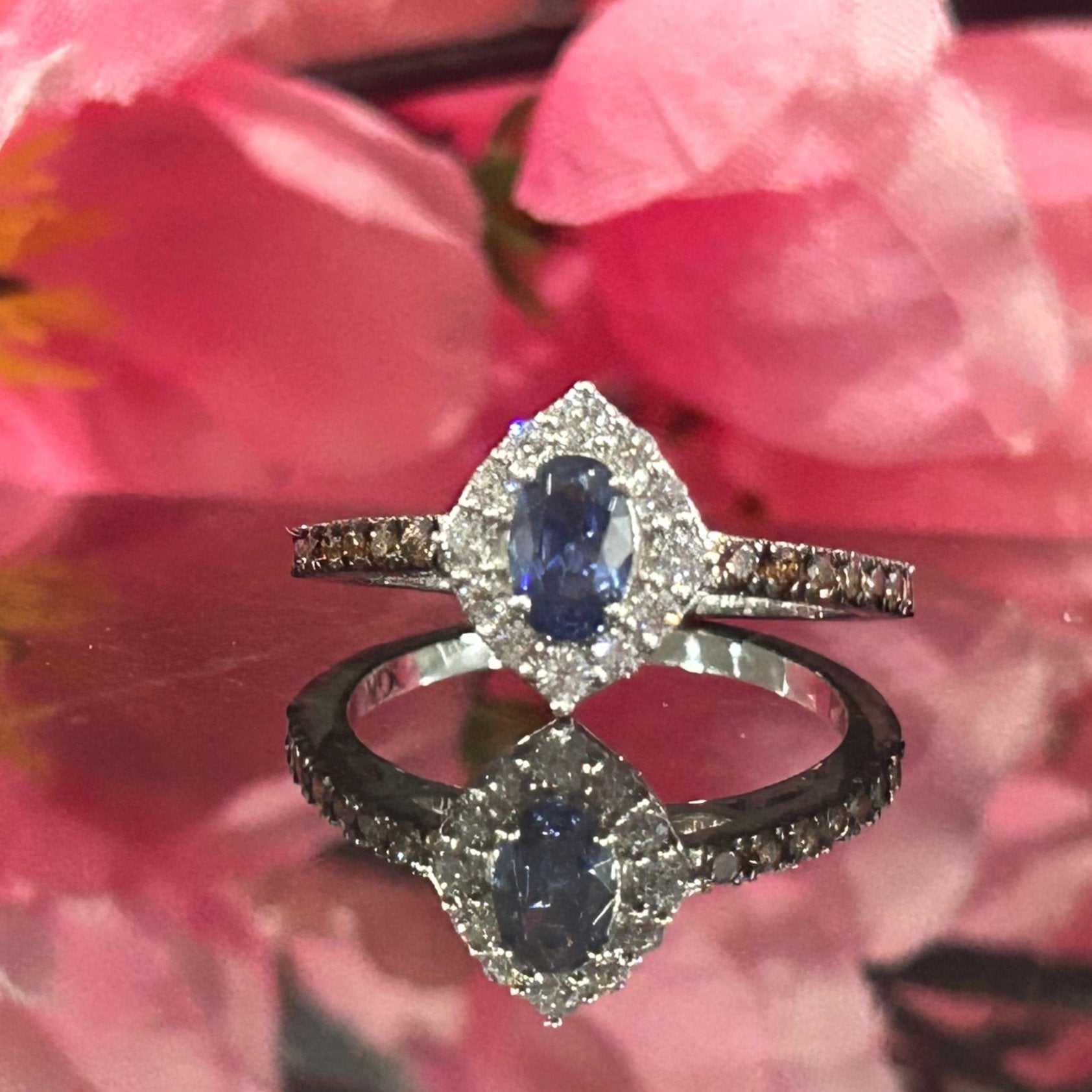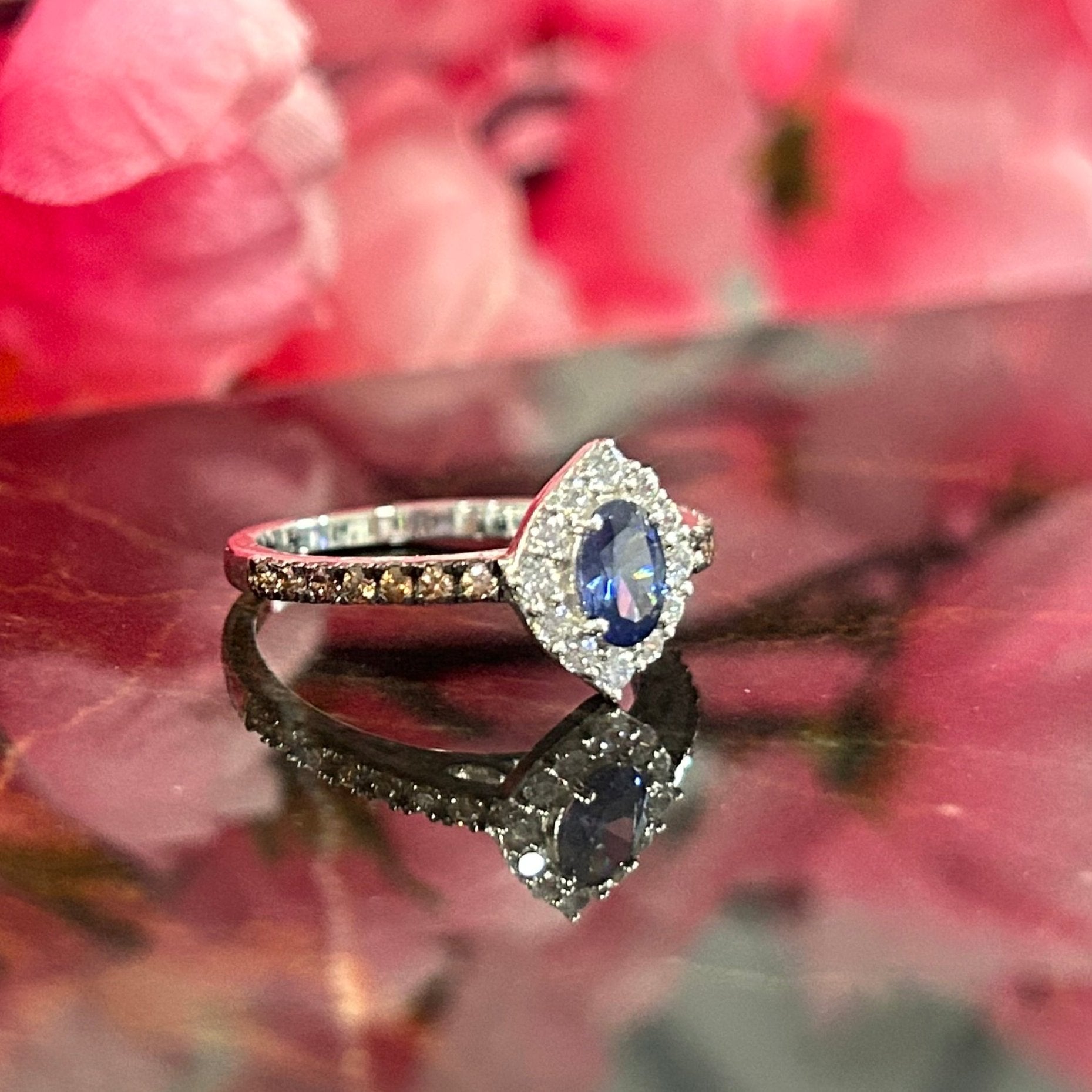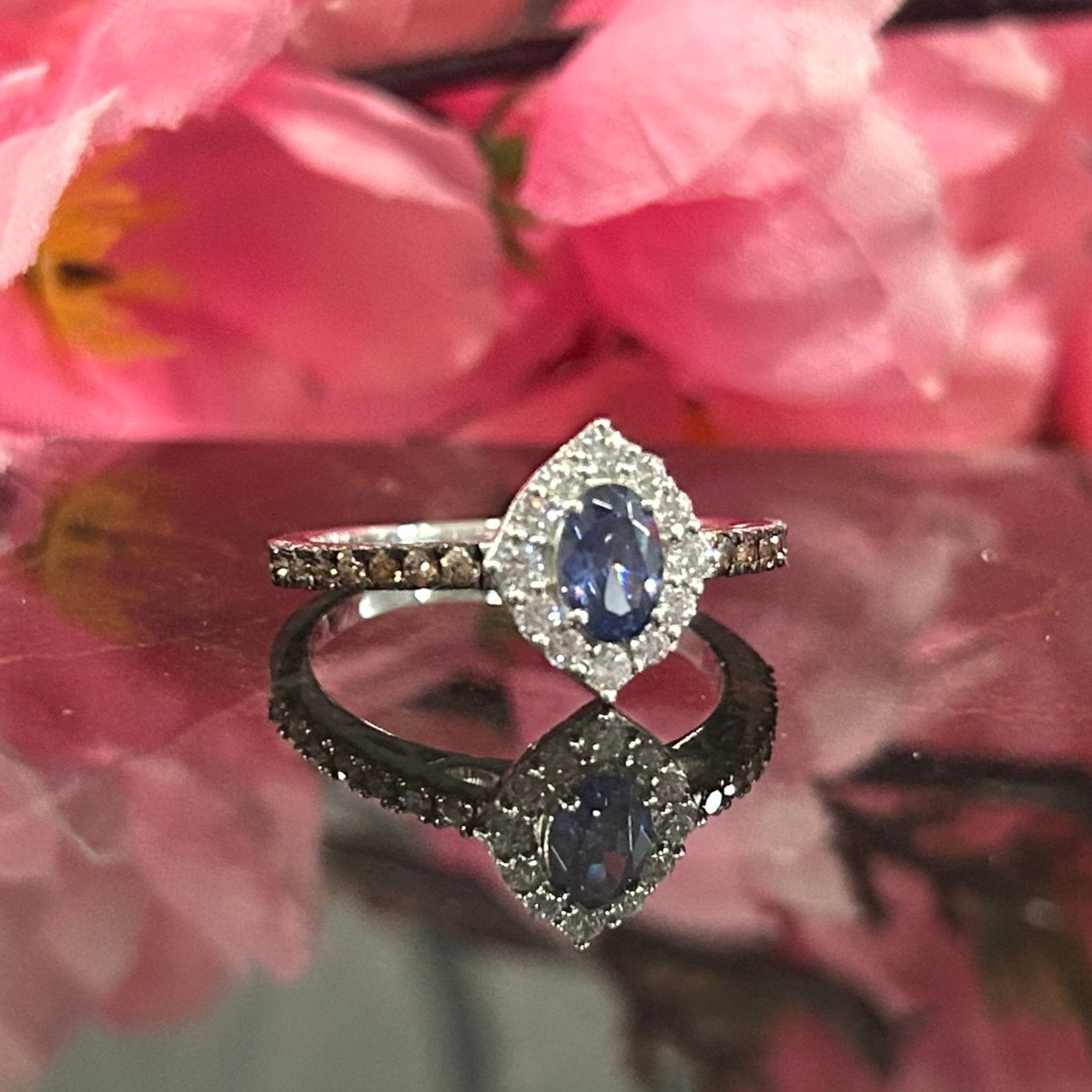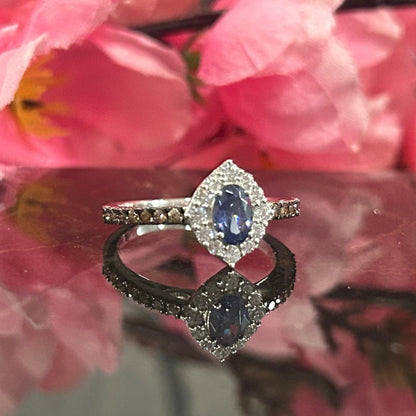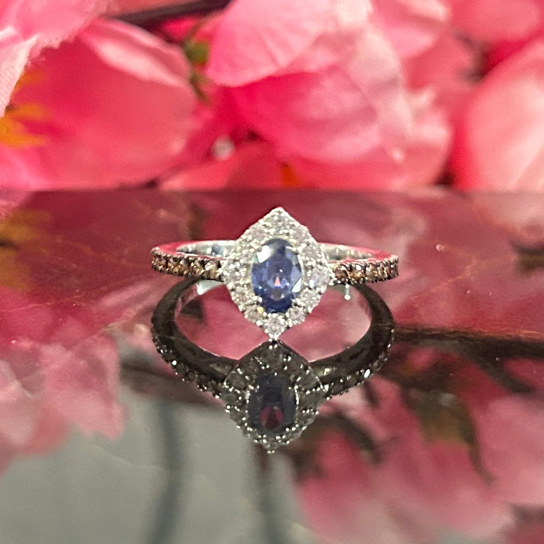 SERENE Oval Cut Tanzanite and Brown Diamond Wedding Ring- Halo Diamond Engagement Ring